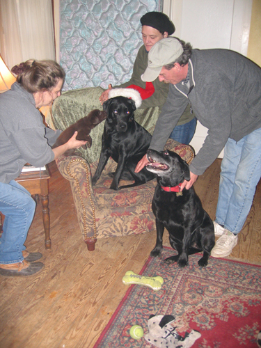 the big guy knocks the friendly first fur ball out of the way...Immediately melting Mary's heart.